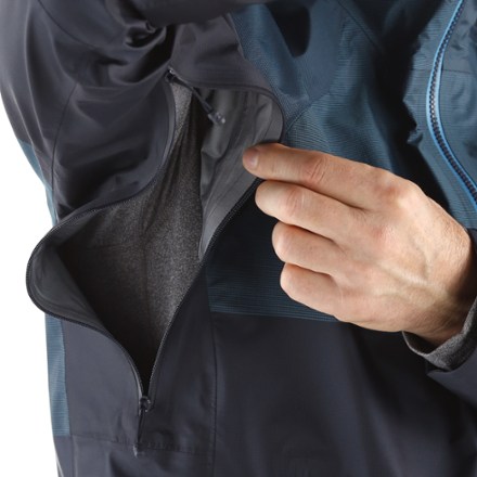 Ready to rough it in wet conditions and gnarly terrain this technical waterproof rain shell is ultralight 12 35 oz yet hyper durable thanks to our fuseform construction that seamlessly integrates strong nylon yarns at the shoulders and breathable polyester yarns through the torso for targeted abrasion resistance.