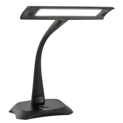 Ottlite 19 75 in adjustable black desk lamp with plastic shade.